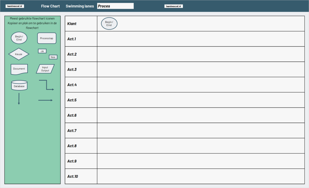 Klik hier om direct de Flowchart met swimming lanes Excel template te downloaden